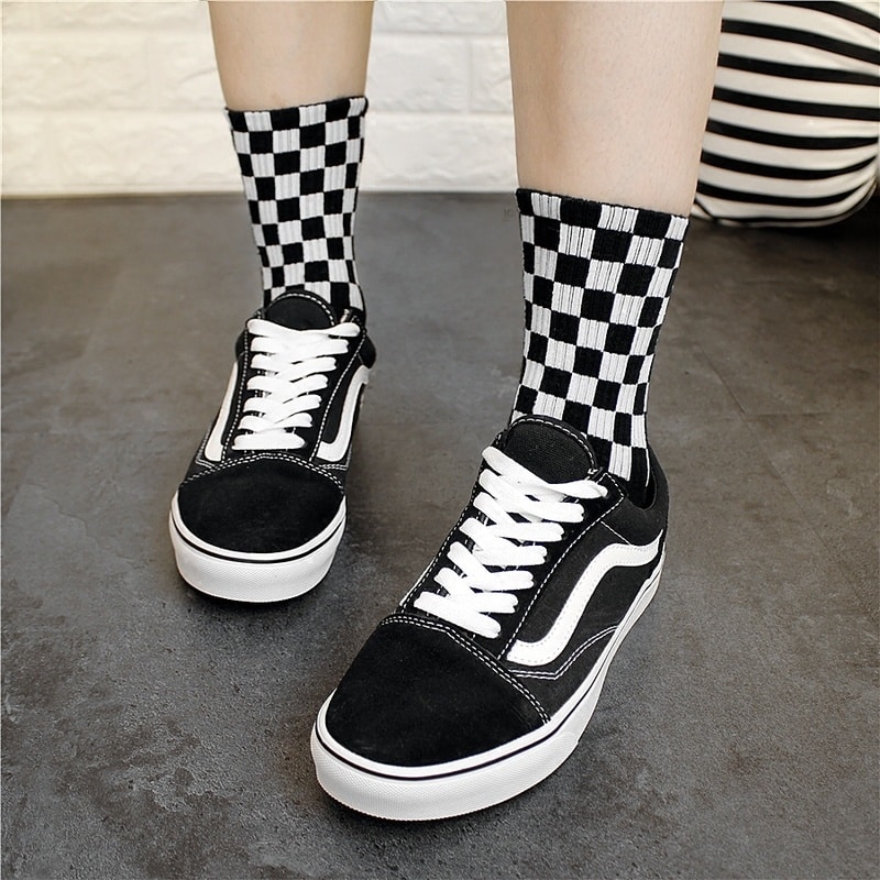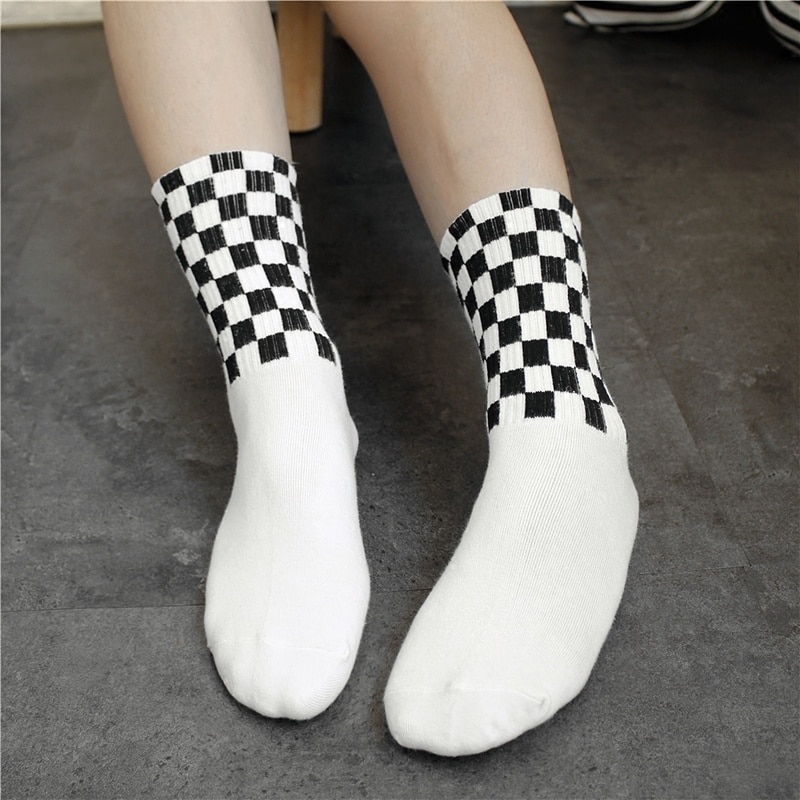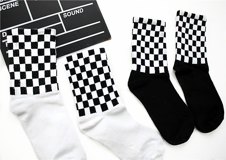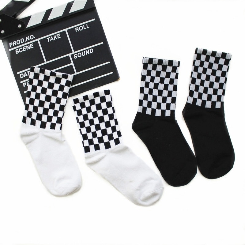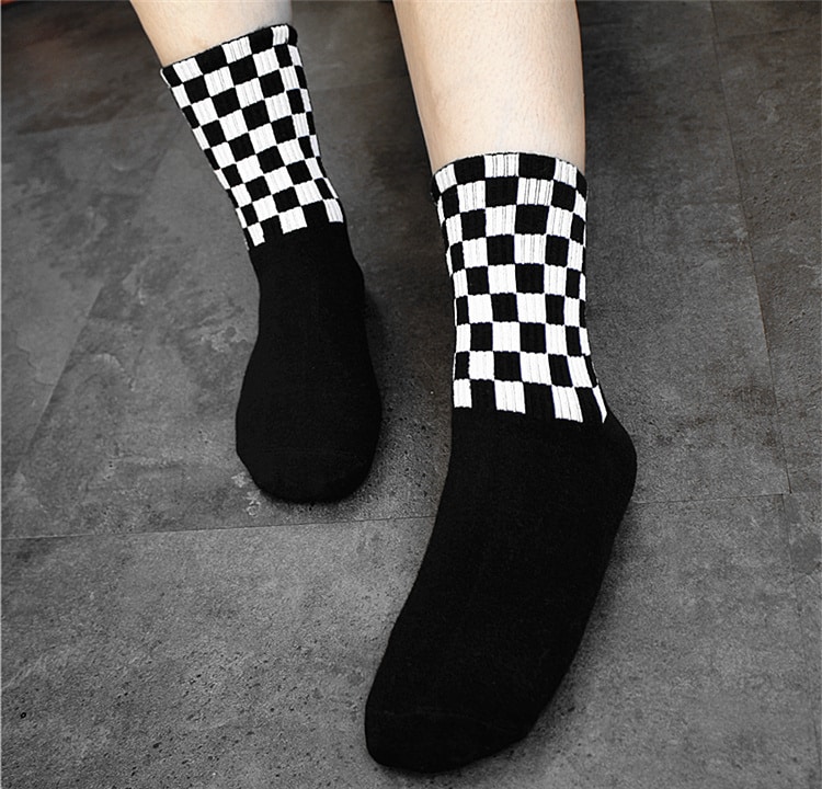 Chaussettes carrées à losange noir et blanc pour hommes en coton