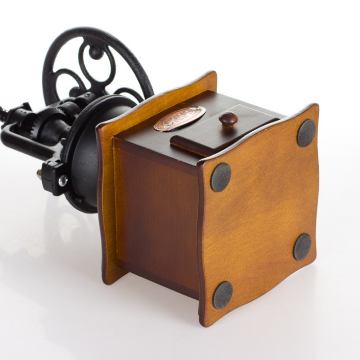 Matériel: corps en fonte, base en bois, noyau de meulage en céramique