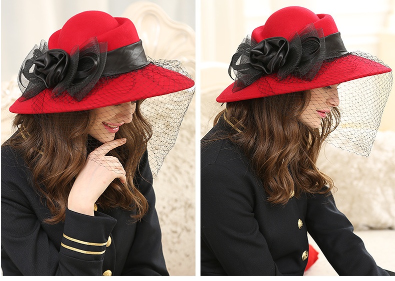 Chapeau de banquet et cérémonie. Grands avant-toits en feutre de laine. Chapeau de laine pour femmes