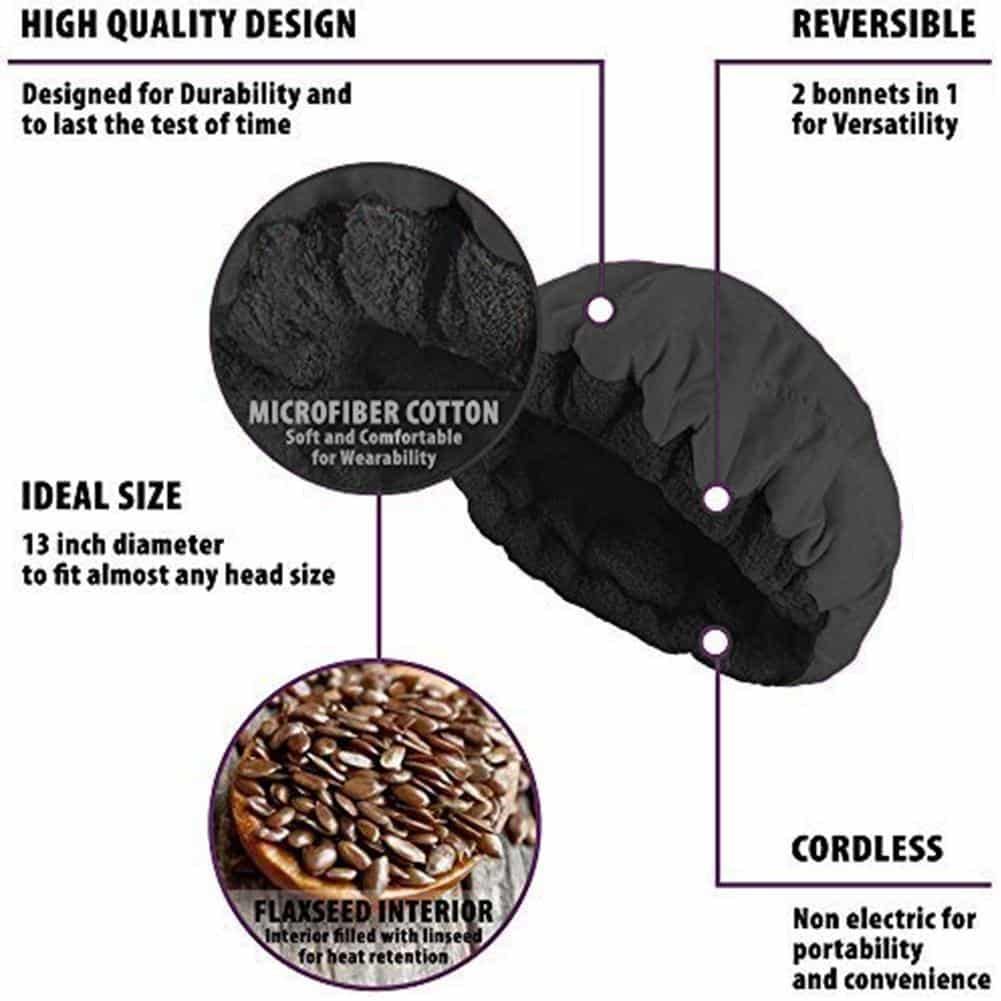 Chapeau pour soins de cheveux. Le bouchon chauffant à des graines de lin répare et favorise la croissance des cheveux.