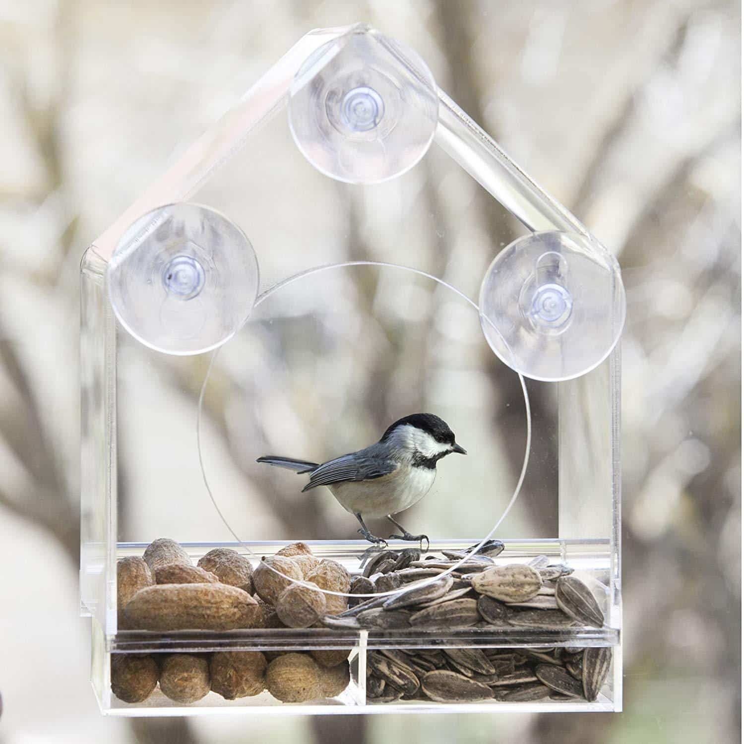 Nom du produit : Mangeoire à oiseaux suspendue en acrylique. Cage à oiseaux en acrylique transparent