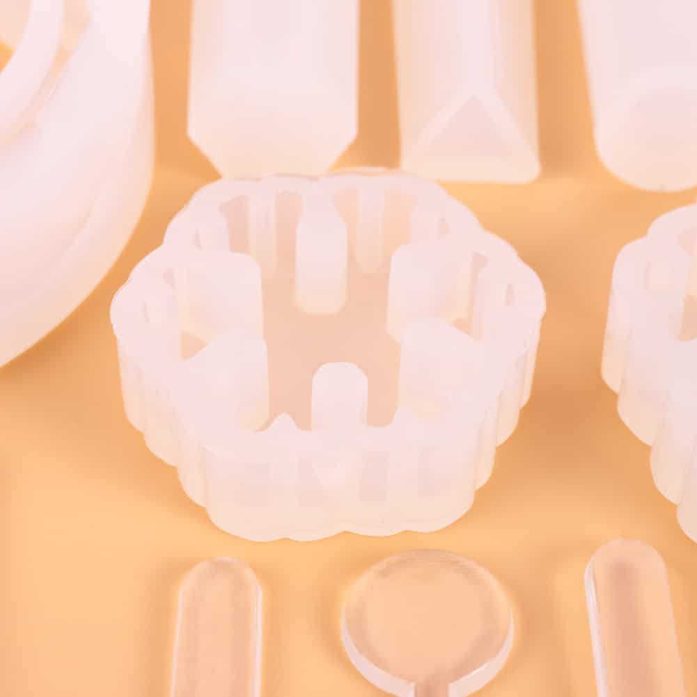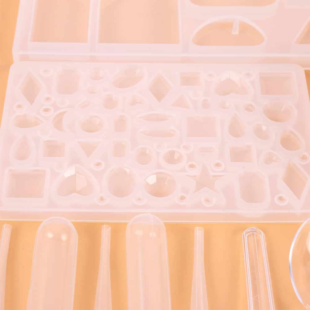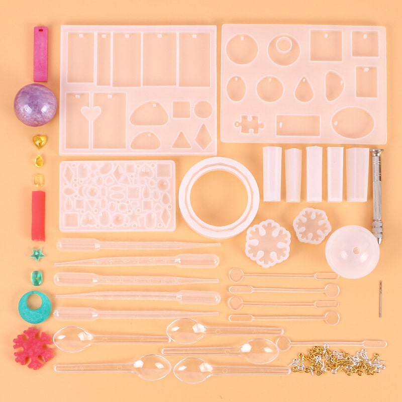 12 moules à colle, 5 cuillères, 5 baguettes de mélange, 5 compte-gouttes, un manche (50 croissants en or et argent chacun), 10 forets