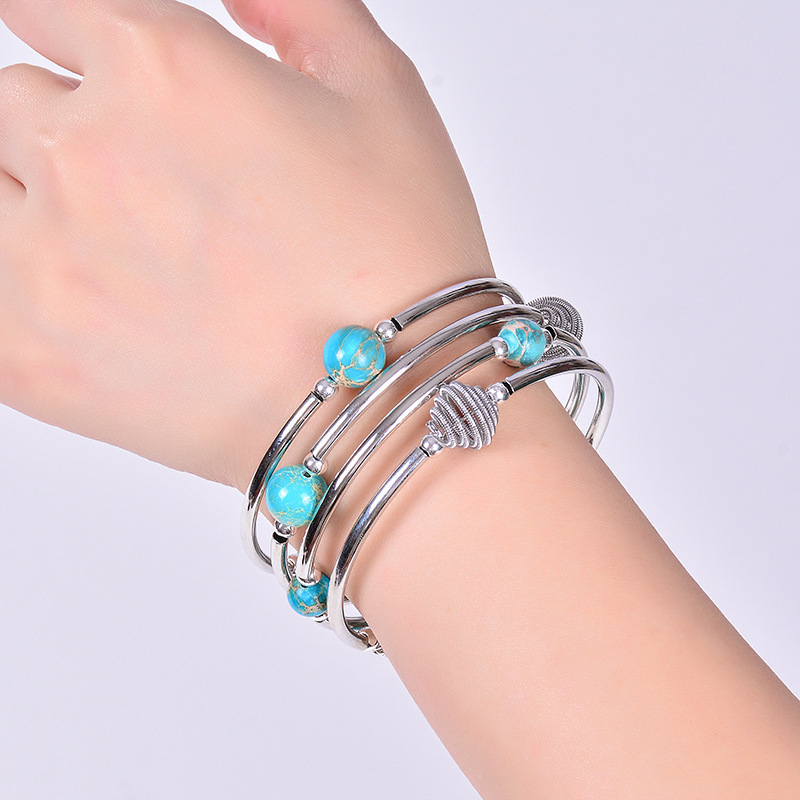 Nom : Bracelet turquoise pierres impériales et pierres bleues naturelles