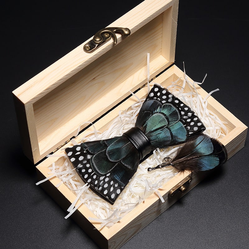 Liste de colisage : nœud papillon + broche + boîte en bois