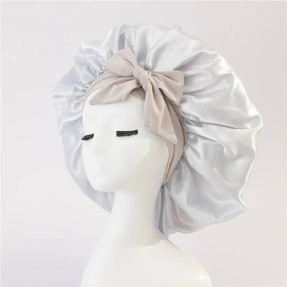 Nouveau Bonnet de soie pour femmes endormies en satin Bonnet de nuit Bonnet de sommeil écharpe pour cheveux bouclés avec bande de cravate pour cheveux bouclés
