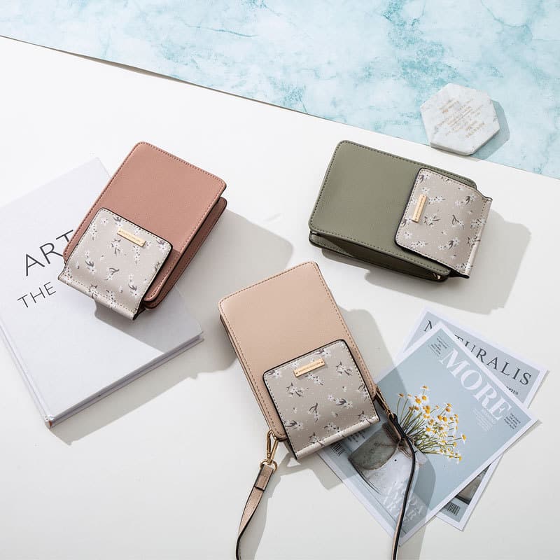 La structure interne du petit sac : téléphone portable, porte-billets, fente pour monnaie, compartiment à fermeture éclair, fente pour carte d’identité