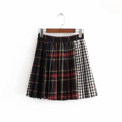 Jupe plissée écossaise à carreaux color block