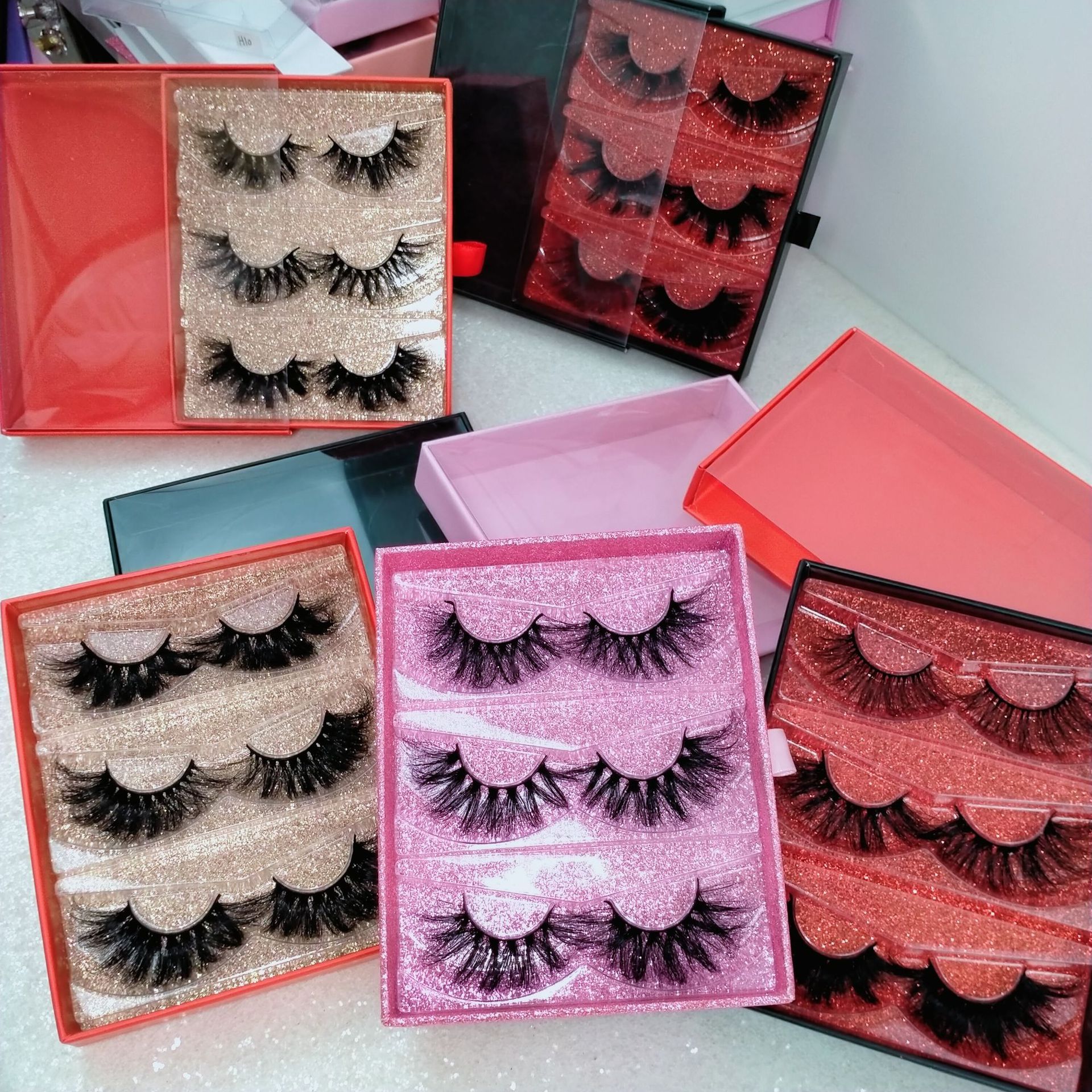 Classification des couleurs : boîte coulissante rose poudré, boîte coulissante rouge or, boîte coulissante noire et rouge