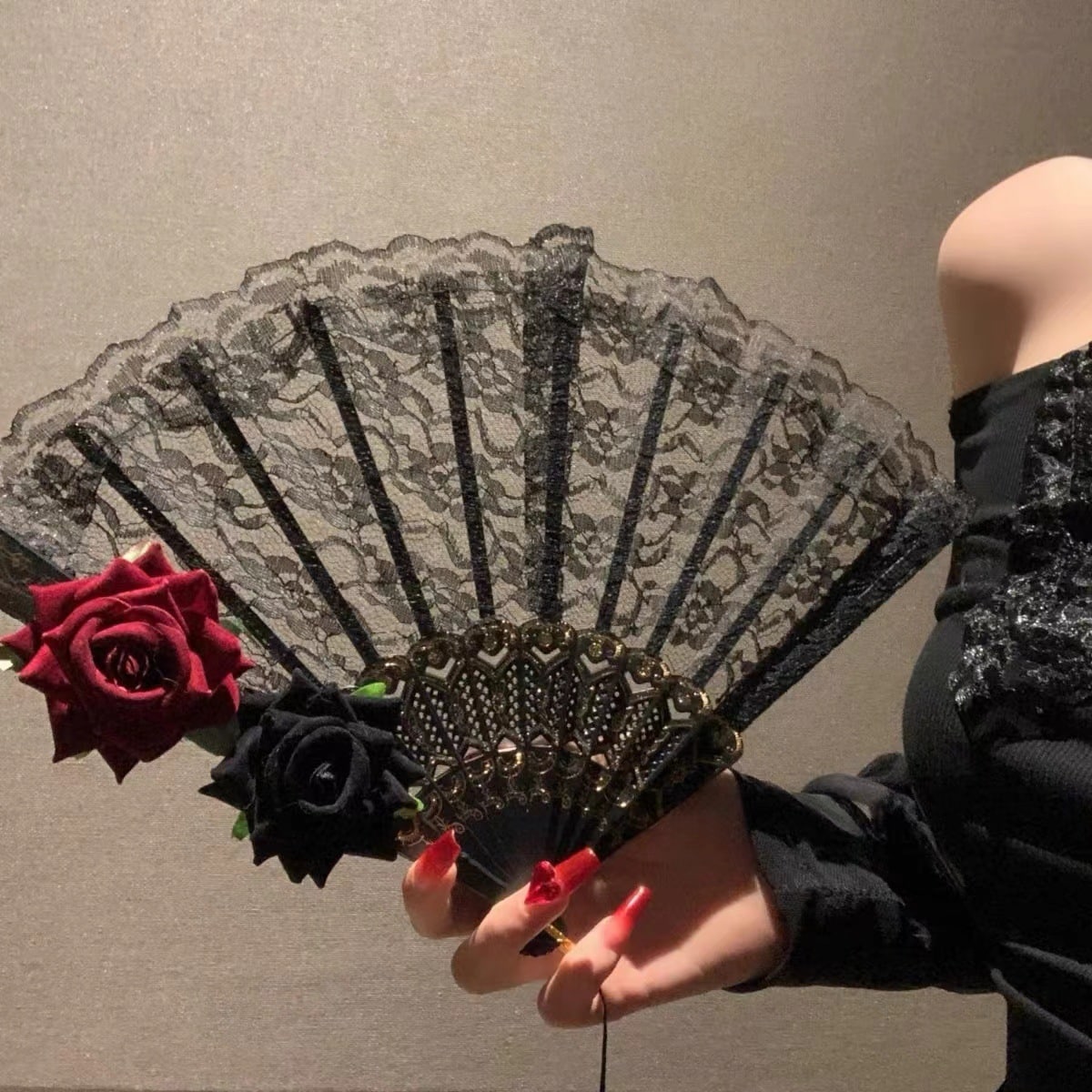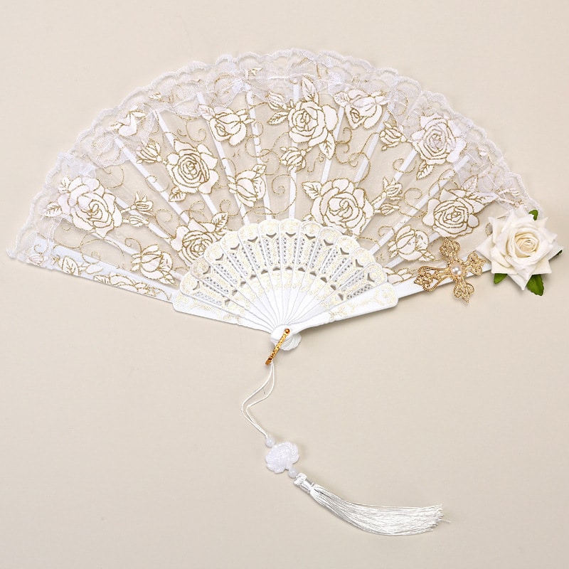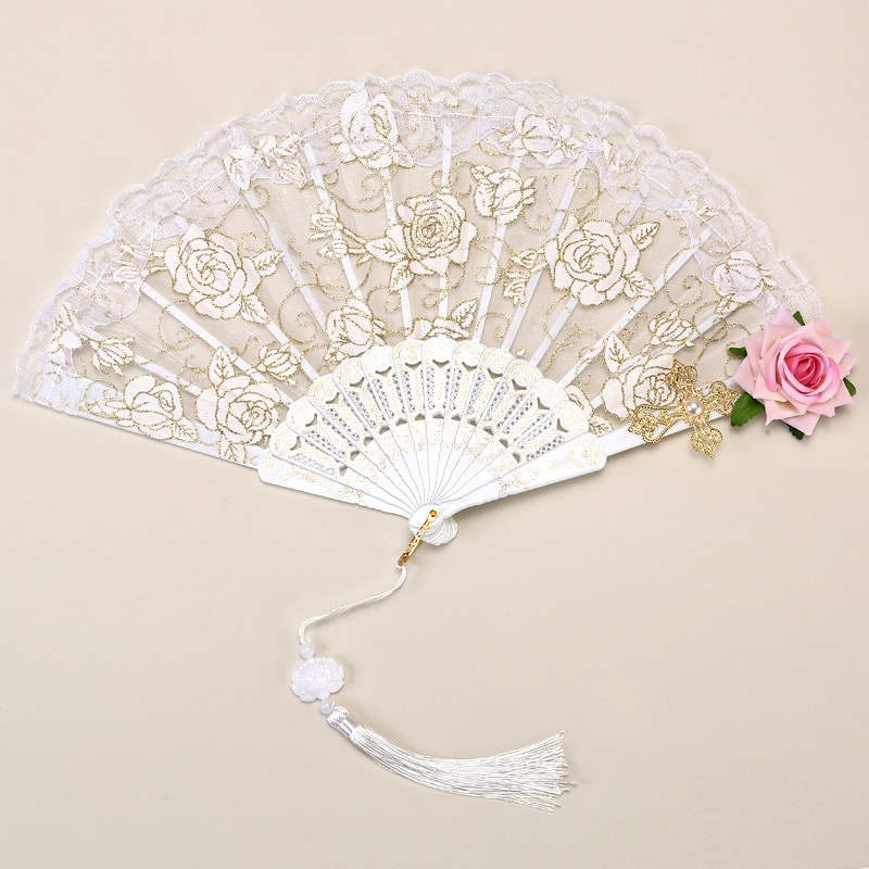 Couleurs : Noire dentelle bordeaux rose fan pour pendentif, blanche dentelle blanche rose fan pour pendentif, blanche dentelle rose rose fan pour pendentif, double rose noire noire fan pour pendentif, blanche tournesol fan pour pendentif, noire tournesol fan avec pendentif gratuit, Double Rose taille est la même que Rose avec pendentif pour libre