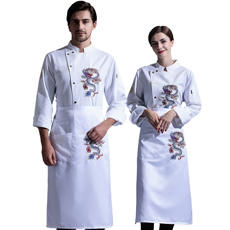 Veste de restaurant-pizzeria et cafétéria à manches longues dragon. Veste de cuisine pour hommes et femmes de style européen et américain à la mode