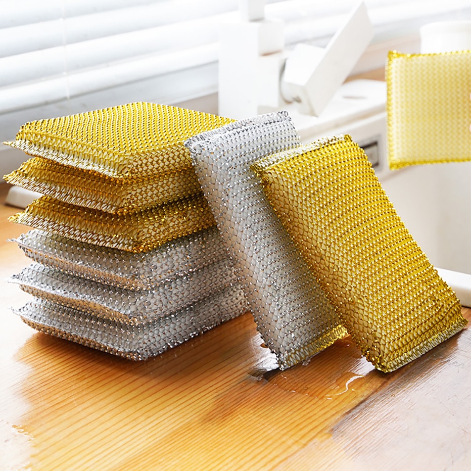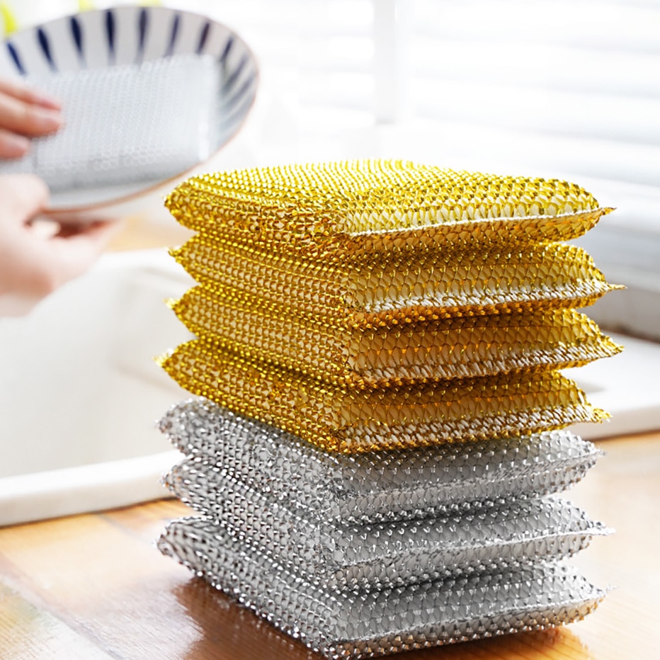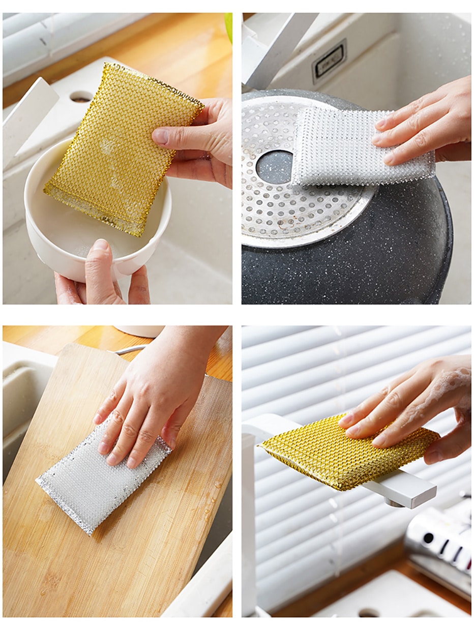 4 pièces. Eponges métalliques double faces pliables. Brosse à vaisselle
